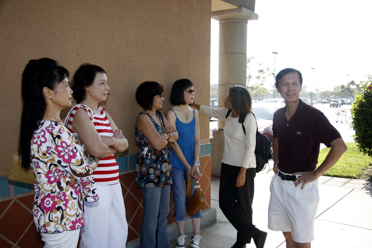| Chờ đón các bạn đến .Từ trái: Lan (vợ Khôi K2), vợ anh Vĩnh, chị Liên K1A, vợ anh Võ,chị Hay K1A, anh Võ K1A | |
