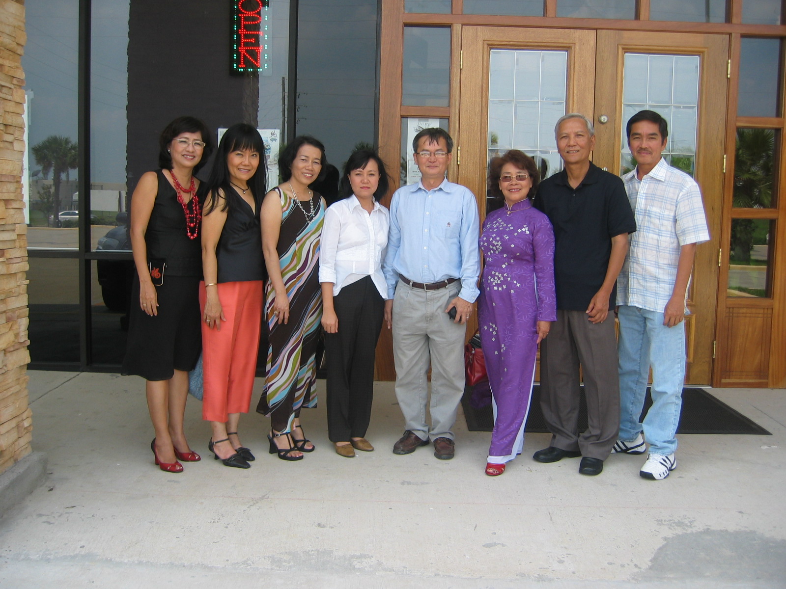 | Từ trái: Bích Vân (vợ anh Dũng K1A), Minh Ngọc K3, Xuân Lộc K5, Trinh (vợ Ái K4) Ái K4, cô Trâm Anh (vợ thầy Long), thầy Long, anh Dũng K1A |